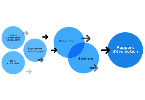 Chez Thinkmax, nous croyons qu’une approche rapide de compréhension et de validation vous permet de bénéficier de solutions et d’élaborer une feuille de route visionnaire sans attendre. Nos experts axés sur le secteur se font un plaisir de collaborer avec vous en adoptant notre méthodologie standard pour accélérer votre processus de transformation numérique à l’aide d’une documentation structurée et directe, ainsi que d’un rapport d’évaluation contenant de précieuses recommandations.
